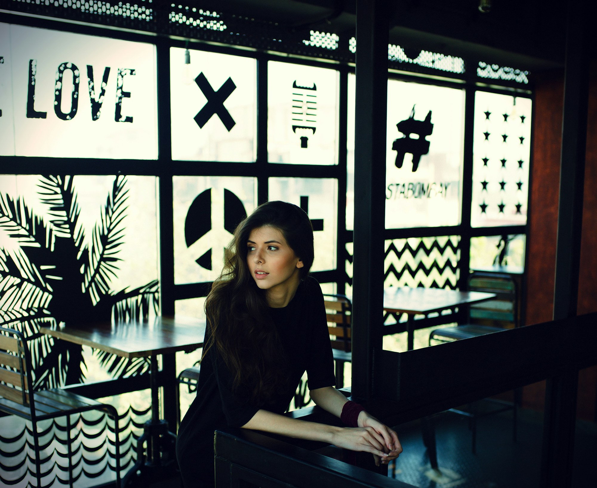 Woman sitting at a table in a coffee shop